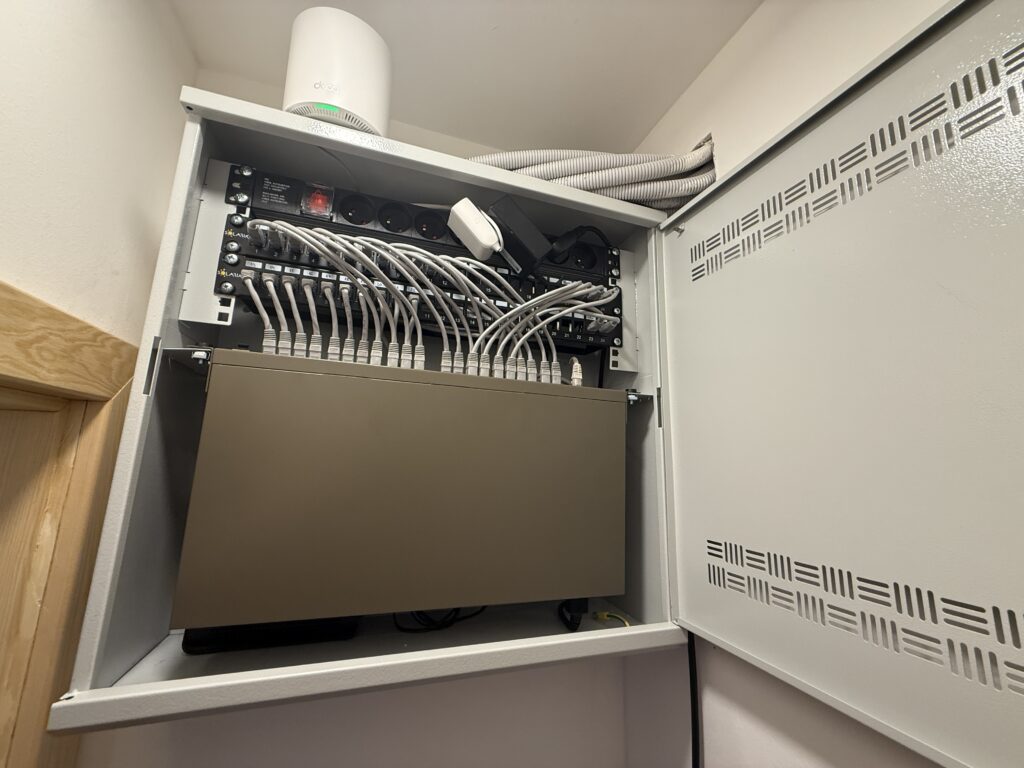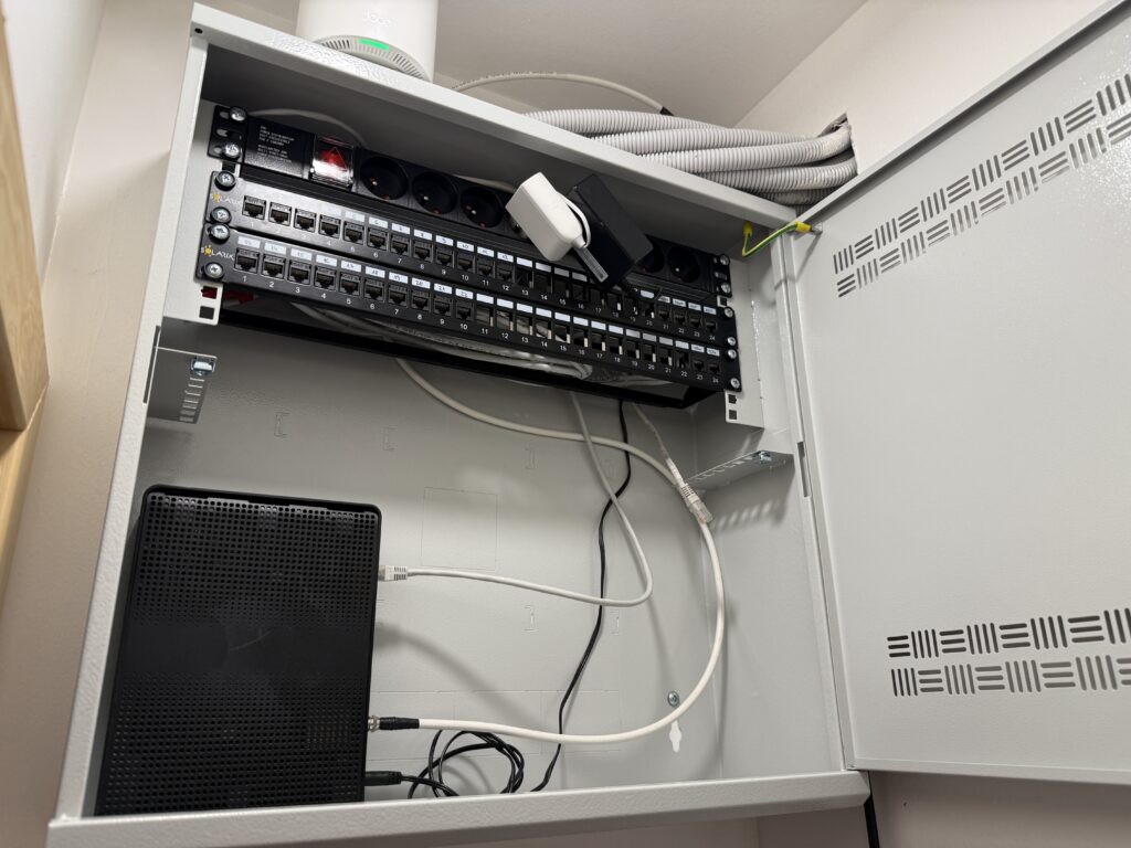 🔧 montáž 48 portového switche Tenda, který je díky bezventilátorovému provedení naprosto tichý